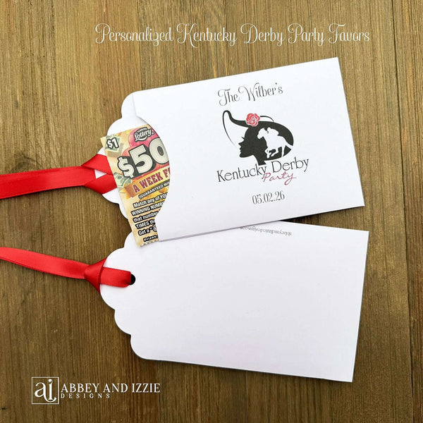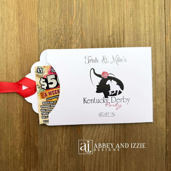 Scratch off Favors For Kentucky Derby celebration, these interactive scratch-off favors that will combine entertainment and elegance. Each guest receives a personalized keepsake featuring classic Derby imagery and hidden surprises inside. Perfect for parties, corporate events, or themed gatherings, these favors spark conversation and create memorable moments. Crafted with quality materials, they serve as both a fun activity and a lasting memento of your special occasion. Add a touch of sophistication to your event with these distinctive, conversation-starting party favors.